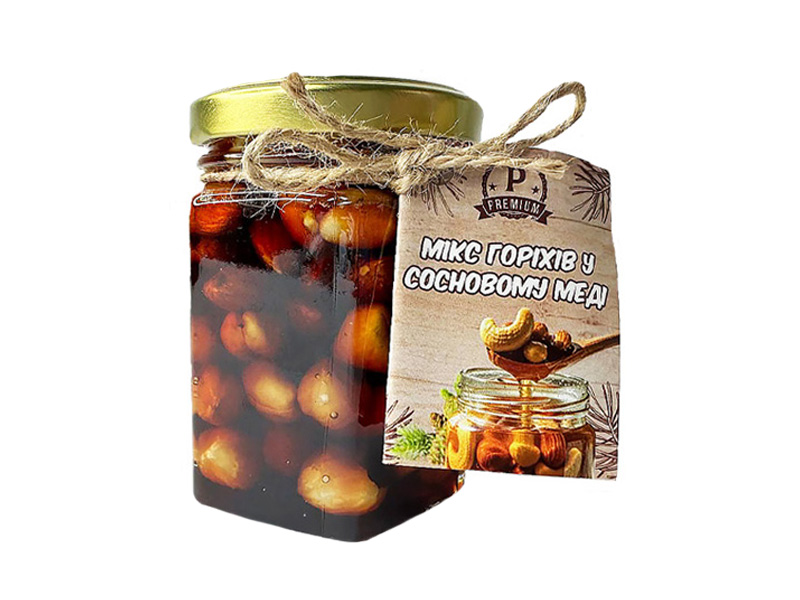 Микс отборных орехов, сосновый мёд.